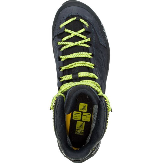Salewa Rapace GTX Mns — чоловічі трекінгові черевики із мембраною Gore-Tex стійкі до зношування і мають міцне верхнє покриття із нубуку. Надійне зчеплення з слизькою, кам`яною чи вологою поверхнею гарантує підошва Vibram WTC. Мембрана Gore-Tex відштовхує вологу та забезпечує повітропроникні властивості взуття. Гумовий рант захищає від ударів та інших механічних впливів, черевики сумісні із кішками. Завдяки системі фіксації ноги 3F System, черевик створює оптимальну форму для максимального комфорту стопи, п`яти та щиколотки. Система подовженої шнурівки Climbing Lacing та устілка з 3-х елементів MFF+ Multi-Fit Footbed дозволяють максимально припасувати та адаптувати взуття під індивідуальні особливості ніг.