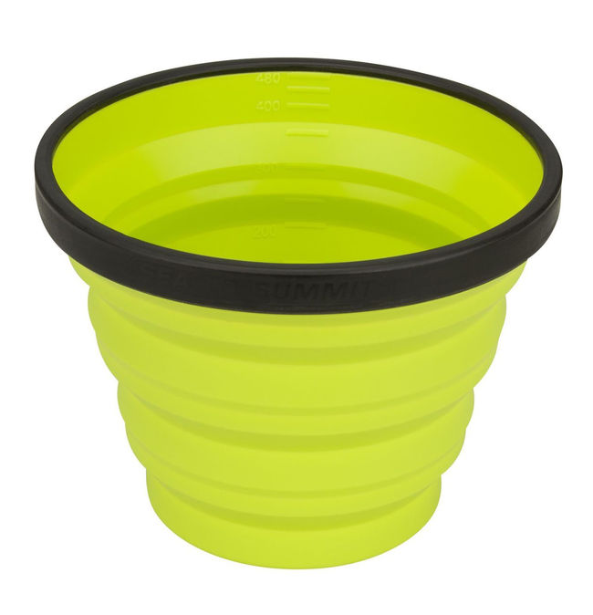 Sea To Summit X-Mug Lime - складна чашка зі стінками із силікону. Міцне кільце дозволяє утримувати форму. Економія місця і ваги в рюкзаку! Витримує температуру від -40 до +180 градусів Цельсія. На стінках горнятка висічена мірна шкала, що дозволяє використовувати її вдома в якості мірного стаканчика.