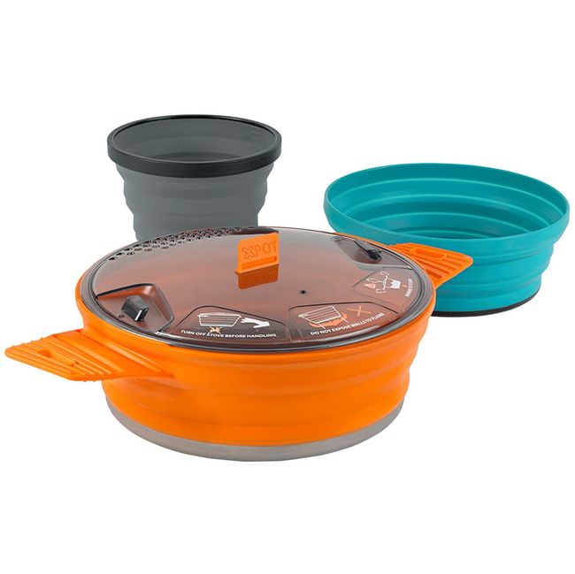 - X-Pots складаються, утворюючи компактні набори для приготування і приймання їжі