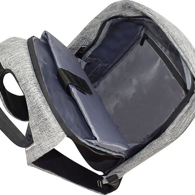 Рюкзак має спинку і дно з товстою м'якою підкладкою, що надійно захищає ноутбук і планшет від ударів. М'яка ручка зручно лежить у руці, а шлейки регулюються по довжині і мають ергономічну форму.