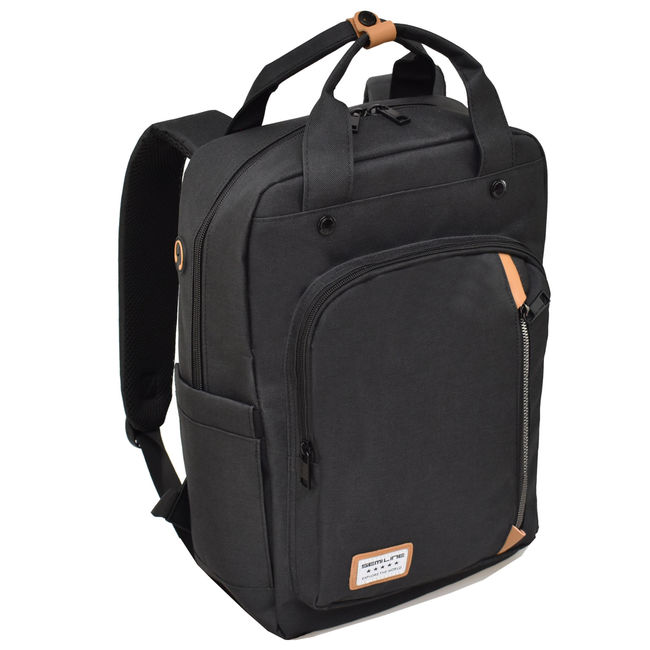Semi Line 21 Black - Стильний рюкзак з незвичною подвійною ручкою для транспортування підійде для повсякденного використання, офісної роботи і подорожей. Він обладнаний спеціальними м'якими кишенями для ноутбука та планшета, окремим великим відділенням з органайзером і місткі кишені спереду та з боків. Поперечна стрічка на спинці дозволяє закріпити рюкзак на телескопічній ручці валізи чи сумки, а м'які ергономічні шлейки додають зручності при носінні на плечах.