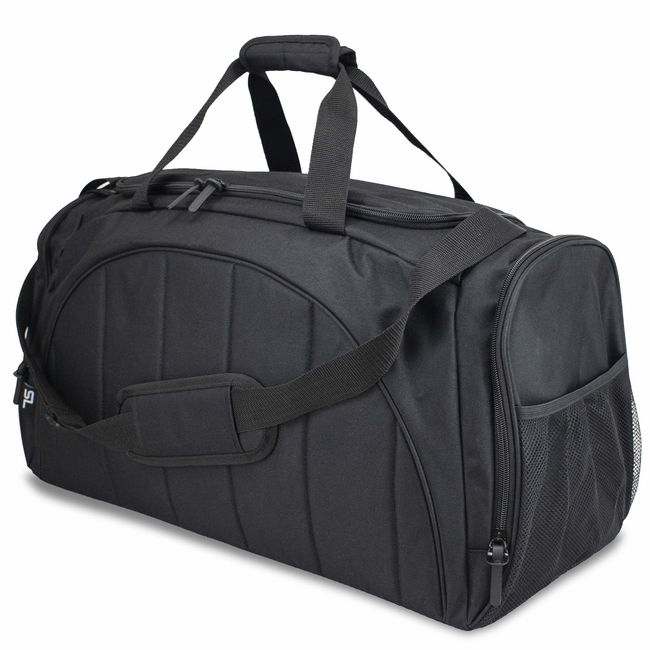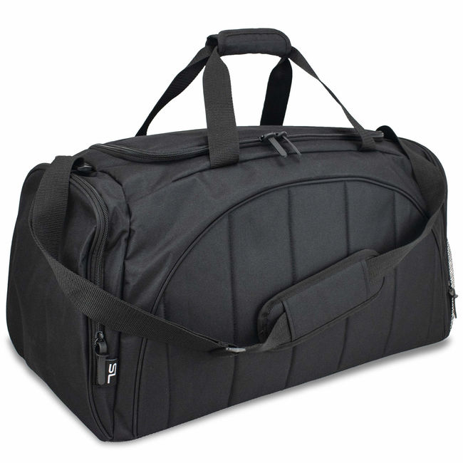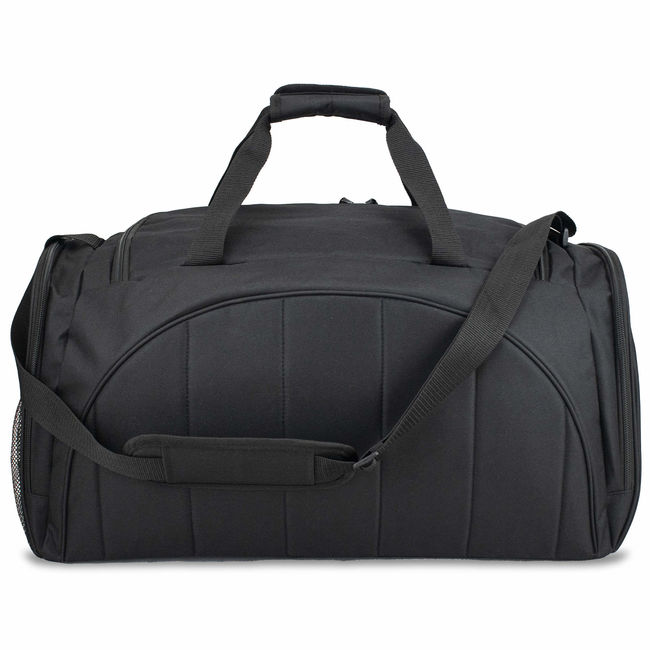 Водостійка сумка для фітнесу і подорожей Semi Line 47 Black з м'якими підкладками на стінках і дні, що допомагають тримати форму і захищають вміст сумки від пошкоджень. Вона обладнана широкими ручками з'єднаними манжетою на текстильній застібці Velcro. Об'ємний центральний відділ дозволить розмістити особисті речі і спортивний інвентар, такий як тенісна ракетка чи боксерські рукавиці з шоломом. Всі більш дрібні речі по своїм місцям можна розмістити в двох зовнішніх кишенях на блискавці і сітчастій кишені. Довгий наплічний ремінь має м'яку, а головне довгу і широку підкладку, що не передавлює плече.