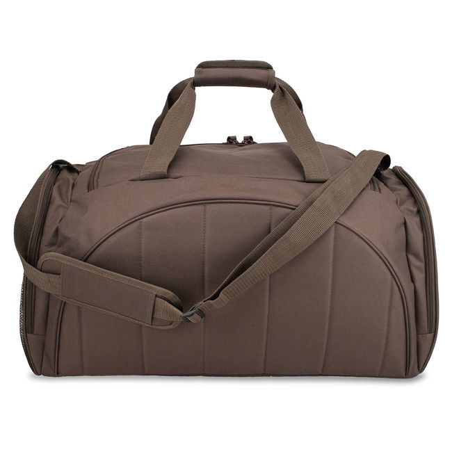 Водостійка сумка для фітнесу і подорожей Semi Line 47 Brown з м'якими підкладками на стінках і дні, що допомагають тримати форму і захищають вміст сумки від пошкоджень. Вона обладнана широкими ручками з'єднаними манжетою на текстильный застібці Velcro. Об'ємний центральний відділ дозволить розмістити особисті речі і спортивний інвентар, такий як тенісна ракетка чи боксерські рукавиці з шоломом. Всі більш дрібні речі по своїм місцям можна розмістити в двох зовнішніх кишенях на блискавці і сітчастій кишені. Довгий наплічний ремінь має м'яку, а головне довгу і широку підкладку, що не передавлює плече.