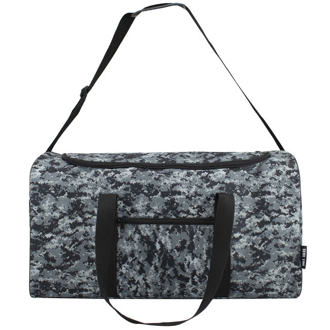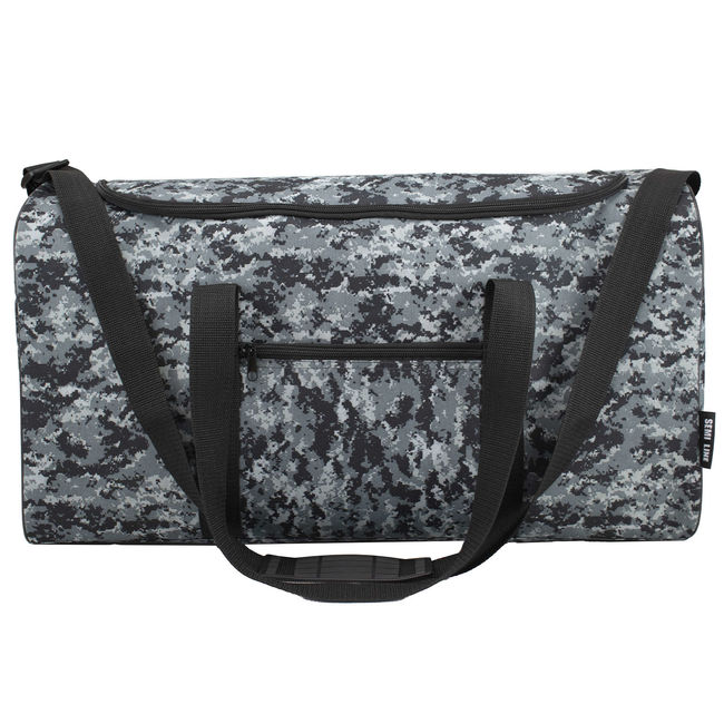 Сумка для фітнесу і подорожей Semi Line 52 Black Camo, об'ємом 52 л, виготовлена з якісного поліестру і має окрему бічну кишеню для дрібниць на блискавці. Спеціальна м'яка підкладка на дні допомагає тримати форму, а пластикові ніжки відділяють дно сумки від підлоги. Великий основний відсік зможе помістити ваші особисті речі і спортивний інвентар, а велика відкидна кришка полегшує доступ в середину. Довгий наплічний ремінь має м'яку пластикову підкладку, що не передавлює плече.