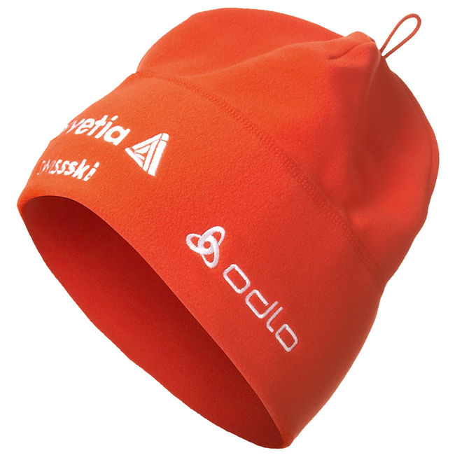 Суперпопулярна шапочка лижних вболівальників ODLO збірних команд Норвегії та Швейцарії з прапорцем і спонсорським логотипом. Хіт продажів в Європі. Еміль Свендсен, Уле Ейнар Бйорндален, Даріо Колонья та інші зірки виступають точно в таких.