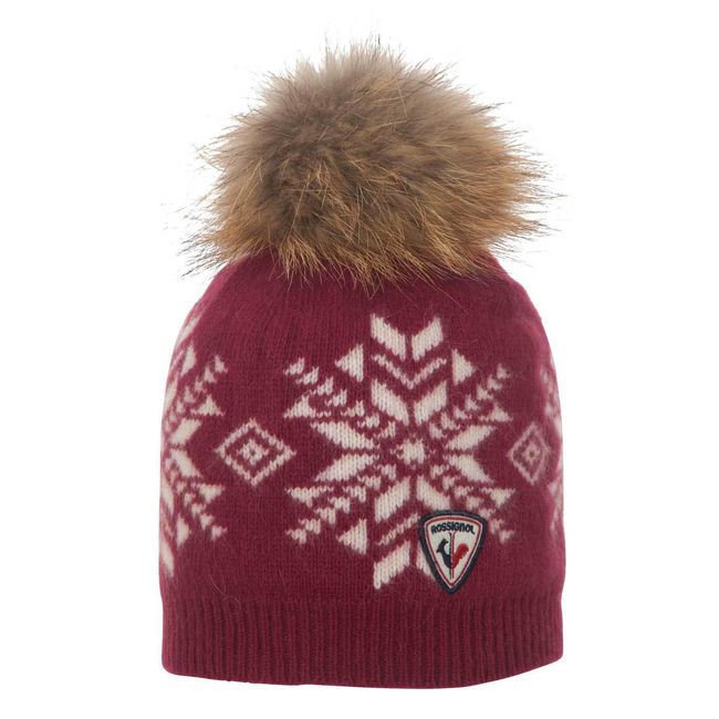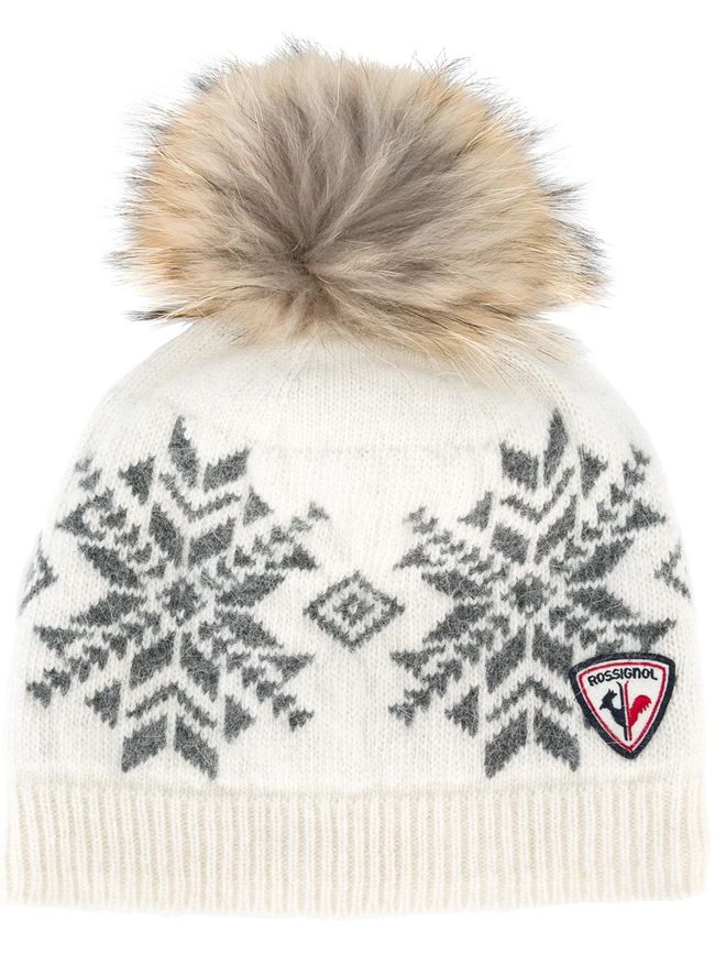 Жіноча лижна в'язана шапка з помпонам, внутрішній матеріал фліс у вигляді пов'язки, еластичний матеріал, привабливий візерунок, маленький красивий логотип.
