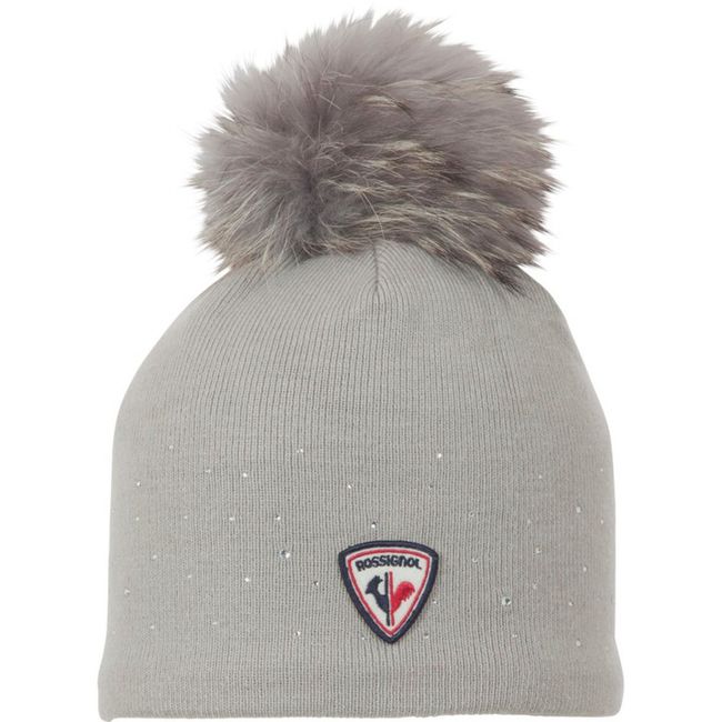 Rossignol W Yaya - елегантна жіноча шапочка, прикрашена каменями та помпоном з натурального хутра. Вшитий м'який фліс для тепла і комфорту. Значок Sport Chic.