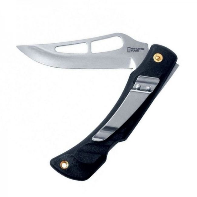 Singing Rock Work - Складаний ніж ідеальний для туристів. Виготовлений з нержавіючої, високоякісної сталі. Отвори на лезі призначені для різного роду робіт. Ручка зроблена з міцного пластику і має кліпсу для кріплення на поясний ремінь. На ручці також є отвір для шнурка.