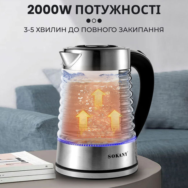 Електрочайник скляний Sokany Sk-1027 2,2 л безшумний з підсвіткою