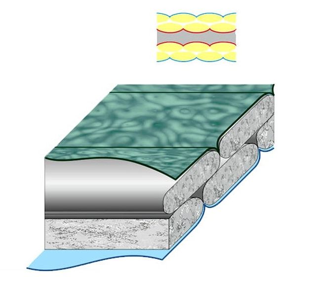 Зовнішня тканина в основному синтетична, але трапляються і бавовна. Синтетичні легші та менше всмоктують вологу на відміну від бавовни.