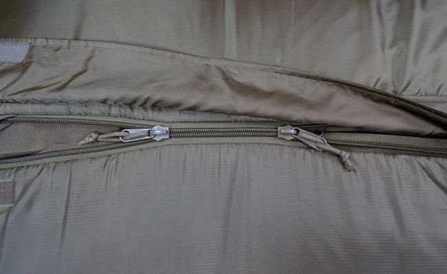 Має фронтальну застібку типу «блискавка» з двома зустрічними двосторонніми замками, що дозволяє за необхідністю вентилювати спальник. Застібка захищена зсередини спеціальною утеплюючою планкою, яка запобігає проникненню холоду. Капюшон утягується і регулюється шнурами з фіксатором. Додатково передбачений зсередини утеплюючий комір в районі шиї. Має внутрішню кишеню для документів.