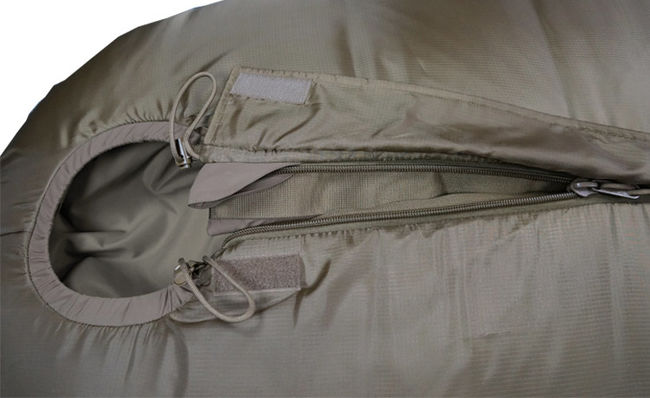 Має фронтальну застібку типу «блискавка» з двома зустрічними двосторонніми замками, що дозволяє за необхідністю вентилювати спальник. Застібка захищена зсередини спеціальною утеплюючою планкою, яка запобігає проникненню холоду. Капюшон утягується і регулюється шнурами з фіксатором. Додатково передбачений зсередини утеплюючий комір в районі шиї. Має внутрішню кишеню для документів.