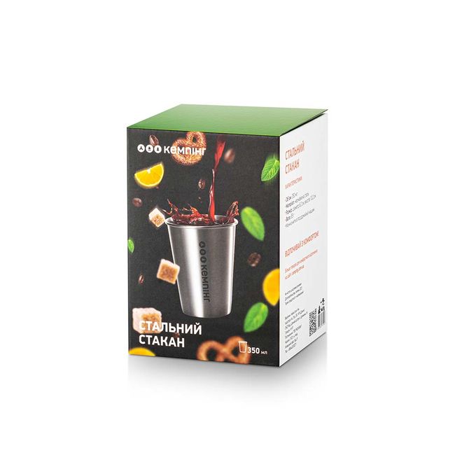 Сталевий стакан Кемпінг — Зручний сталевий стакан з міцної нержавіючої сталі стане у нагоді в поході, на рибаловлі, у подорожі чи дальній поїздці.