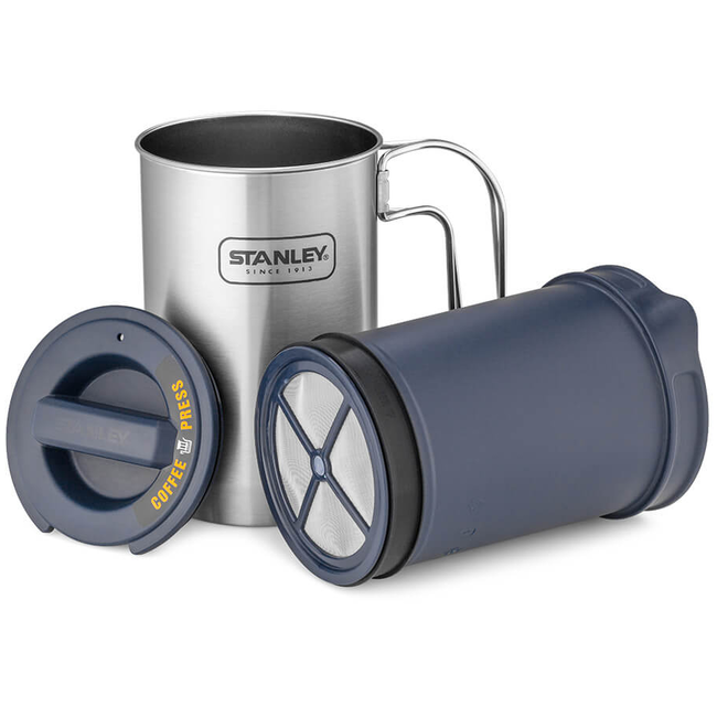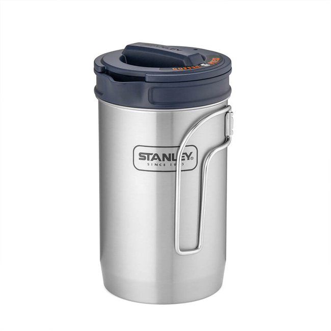 Stanley Adventure Cook and Brew - ідеальний подарунок для кавоманів і любителів чаю. З таким похідним аксесуаром високо в горах, на березі річки або в лісі ви зможете в будь-який час насолоджуватися свіжоприготовленими напоями. Для цього в наборі є все необхідне: місткий сталевий казанок з ручкою для нагріву води, пластиковий френч-прес з носиком для наливання і кришка, надійно утримує тепло.