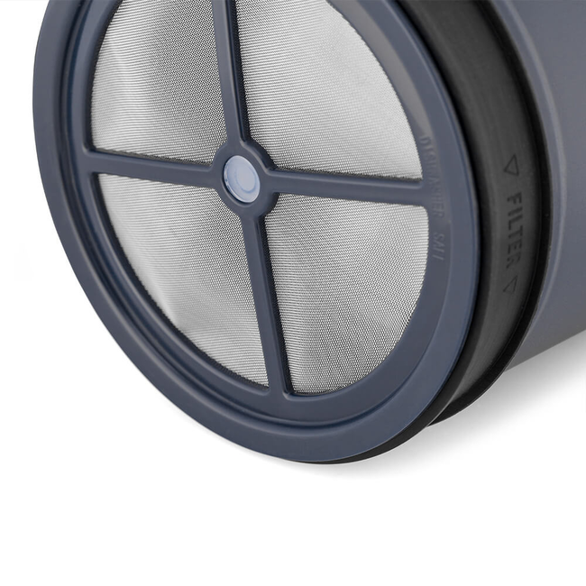 - Компактний набір з казанка зі складною ручкою для приготування напою і пластикового стакана c кришкою, що закручується (кава-прес для відсіювання кавової гущі і листя чаю);