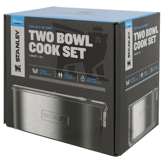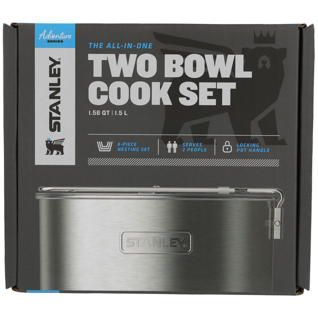 Stanley Adventure Two Bowl Cookset - Термонабір для приготування їжі, ідеальний варіант для мандрівників, рибалок, туристів і альпіністів. З таким комплектом ви зможете повноцінно пообідати на привалі - в будь-який момент закип'ятити воду для чаю, приготувати юшку, суп або польову кашу.