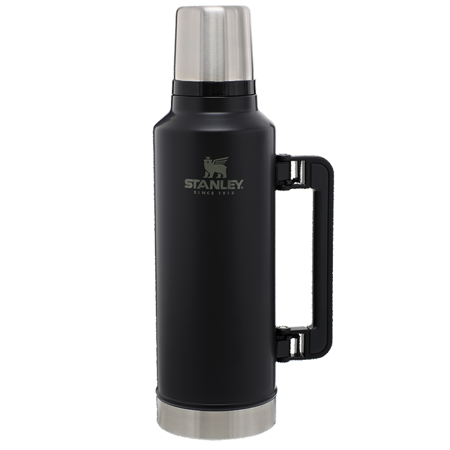 Stanley Legendary Classic 1.9L Matte Black - найкращий вибір для великих сімей і дружніх компаній. Містка модель на 1,9 літра надовго забезпечить вас гарячим чаєм, кавою або водою для приготування напоїв в похідних умовах.