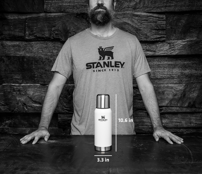 Стійке порошкове покриття зовнішніх стінок не боїться подряпин і відколів. Обтічний суцільнометалевий корпус білого кольору з фірмовим логотипом Stanley - гарантія якості, перевіреного часом.