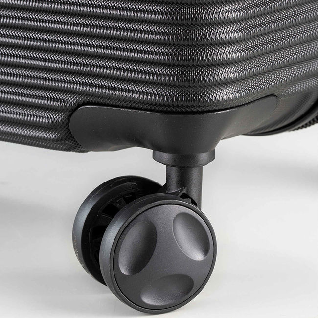 - EIGHT WHEELS LUGGAGE - дана модель оснащена чотирма спареними колесами, що обертаються на 360°. Спарені колеса забезпечують кращий розподіл ваги та стійкість валізи, відмінне зчеплення, маневреність та мають велику зносостійкість. Колеса кріпляться на 4 гвинти зсередини, що забезпечує високу стійкість при ударному навантаженні з будь-якого боку, і дозволяє їх замінити у разі зношування.