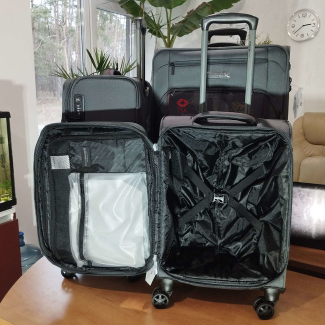 - Дві внутрішні сітчасті кишені на блискавках для розміщення дрібних речей всередині валізи.