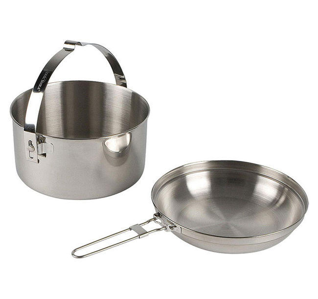 - Stainless Steel 18/8 - високоякісна неіржавіюча сталь, з якої зроблені каструлі, сковорідки та інший туристичний посуд, довговічність, безпечна для харчування і легко чиститься.