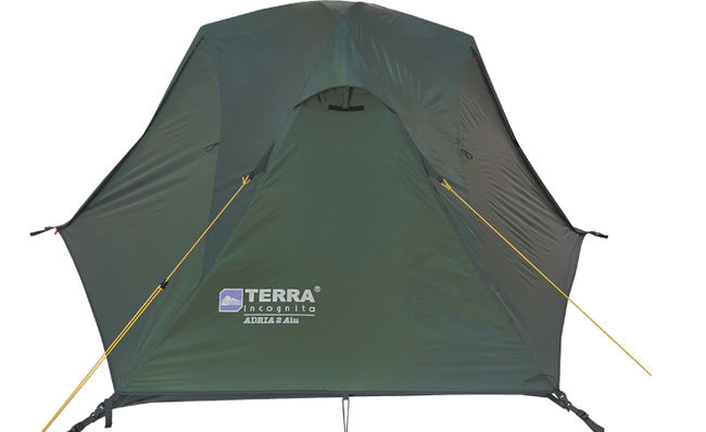 Terra Incognita Adria 2 Alu Red - Практичний трьохсезонний 2-х містний намет. Нова вдосконалена форма каркаса максимально збільшує обсяг спального приміщення. Великі і зручні тамбура, в яких можна розмістити речі та спорядження. Два входи дають можливість прямого доступу в спальню і забезпечують ідеальну вентиляцію. Просте і швидке розкладання та складання.