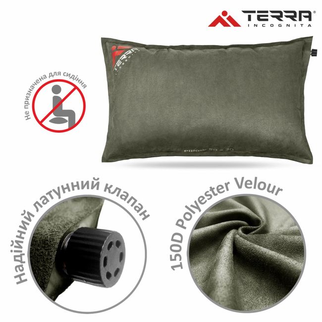 Terra Incognita Pillow 50x30 - Компактна подушка, що сама надувається, з велюровою поверхнею яка підвищує комфорт і гарантує приємний контакт з тілом.