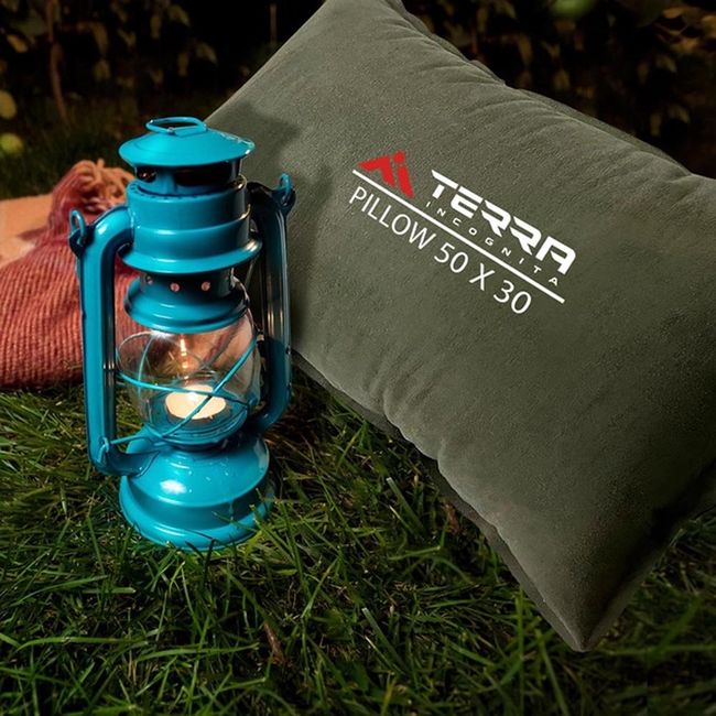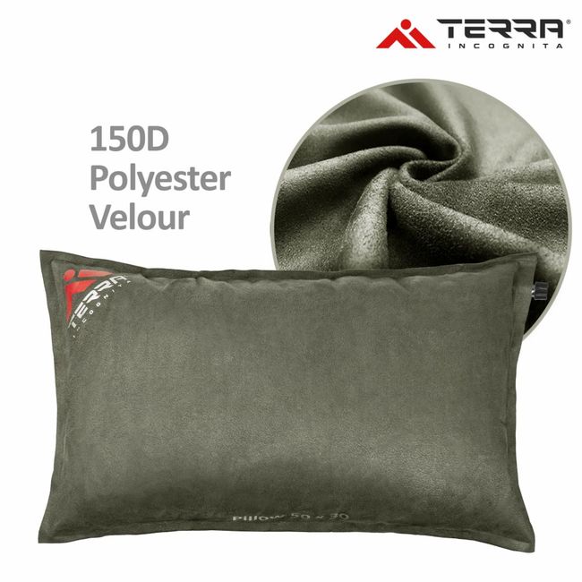 Terra Incognita Pillow 50x30 - Компактна подушка, що сама надувається, з велюровою поверхнею яка підвищує комфорт і гарантує приємний контакт з тілом.