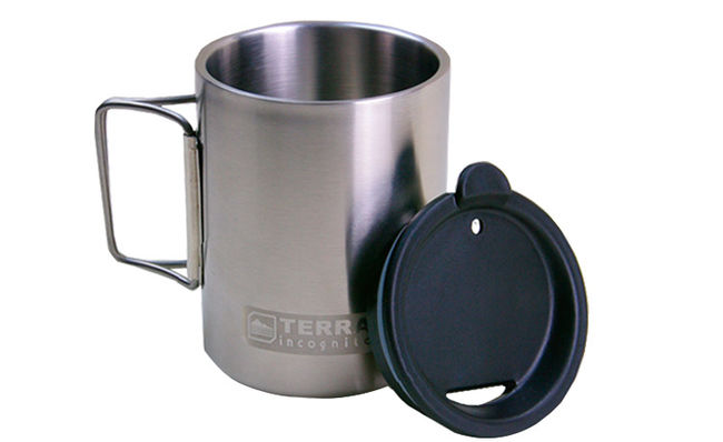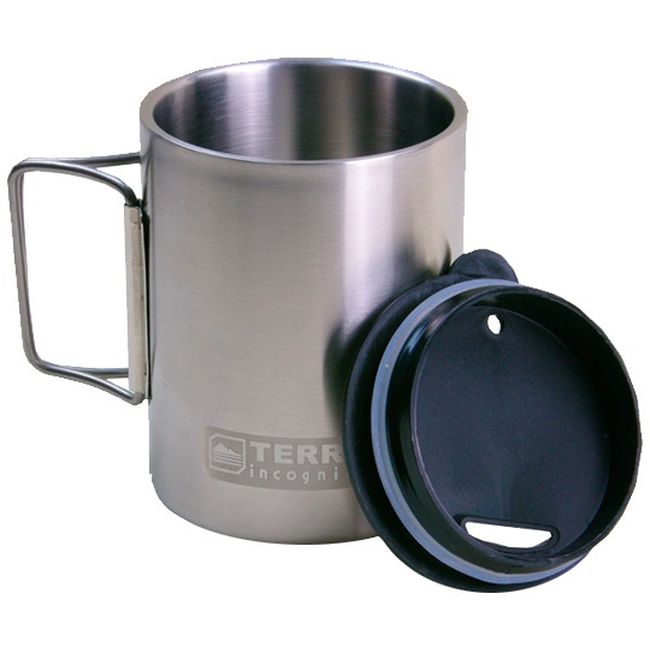 Terra Incognita T-MUG 250W/Cap Туристичне термогорня з кришкою і складними ручками. Виготовлене з 100% нержавіючої сталі. Конструкція з подвійними стінками і вакуумною ізоляцією між стінками, а зручна кришка дозволяє тривалий час зберігати температуру напою.
