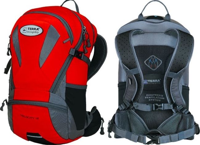 Terra Incognita Velocity 20 Red - cпортивний рюкзак об'ємом 20 літрів з натяжною сітковою спиною, що забезпечує максимальну вентиляцію з усіх боків. Можливість зовнішньої фіксації велошолому з допомогою з'ємної еластичної сітки, збільшення об'єму основного відділення. Рюкзак укомплектований водовідштовхуючим чохлом.