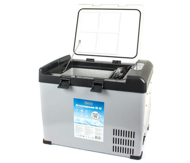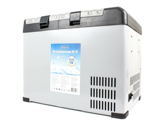 Thermo BD32 - це портативний компресорний автохолодильник об'ємом камери 32 літри. Створено для тих, кому потрібно тривалий час зберігати точно задану низьку температуру або мати можливість утримання негативних температур, в даному випадку до -25 ℃.