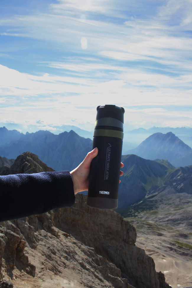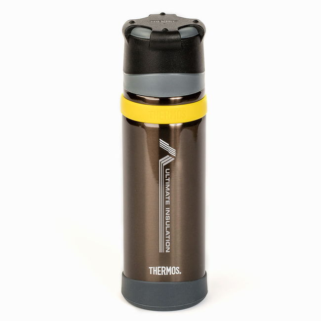 Thermos Mountain Beverage Bottle 0.5 L — з подвійним корком. Виготовлений з нержавіючої сталі з вакуумною ізоляцією, має подвійний корок. Термос Mountain 500 є лідером серед туристичних термосів. Його вага складає !!! 280 г., а якщо зняти гумове антиковзаюче кільце та захист дна, вага буде 260 г. Така вага притаманна тільки титановим термосам, але вони значно дорожчі. Дуже довго зберігає напій гарячим. Після 6 год. температура напою все ще вище 80°С (початкова температура напою 97°C, температура навколишнього середовища 20°С). Специфікою такої відмінної теплоізоляції є вузька горловина (36 мм.) та спеціальний корок. Корок є подвійним, перфорованим та виготовлений з двох видів твердих матеріалів, що запобігають ковзанню під час відкриття, навіть, у рукавицях. Корок був розроблений так, щоб налити напій, його потрібно повернути тільки на пів оберта. Легкий у догляді. Широке дно термоса підвищує максимальну стійкість.