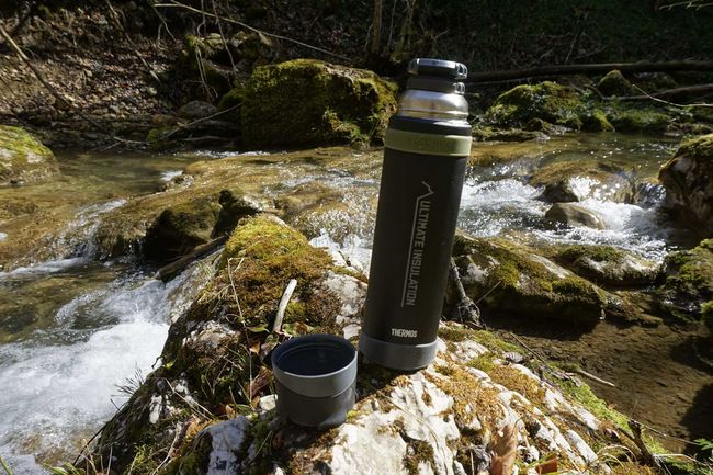 - Thermos Mountain дуже легкий. За вагою він порівнюється з титановими моделями, але коштує значно дешевше. Без протиковзного кільця і захисту дна вага становить лише 330 г.