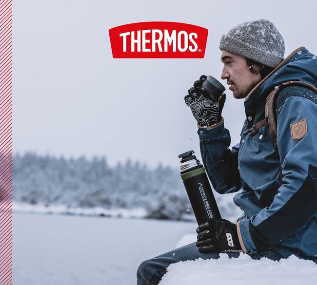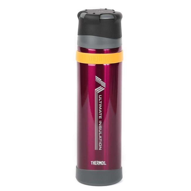 Thermos Mountain Beverage Bottle 0.9 L — ідеальний помічник при екстремальних походах. Виготовлений з нержавіючої сталі з вакуумною ізоляцією, має подвійний корок. Термос Mountain 900 є лідером серед туристичних термосів. Його вага складає !!! 390 г., а якщо зняти гумове антиковзаюче кільце та захист дна, вага буде 360 г. Така вага притаманна тільки титановим термосам, але вони значно дорожчі. Дуже довго зберігає напій гарячим. Після 6 год. температура напою все ще вище 80°С (початкова температура напою 95°C, температура навколишнього середовища 20°С). Специфікою такої відмінної теплоізоляції є вузька горловина (36 мм.) та спеціальний корок. Корок є подвійним, перфорованим та виготовлений з двох видів твердих матеріалів, що запобігають ковзанню під час відкриття, навіть, у рукавицях. Корок був розроблений так, щоб налити напій, його потрібно повернути тільки на пів оберта. Легкий у догляді. Широке дно термоса підвищує максимальну стійкість.