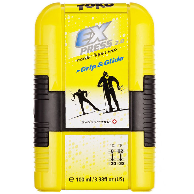 Toko Express Grip&Glide 100ml — Універсальний рідкий віск для бігових лиж. Розроблений для лиж із механічною системою підйому. Підходить для снігу будь-якого типу та температури. Компактне упакування. Наявність пристрою для втирання.