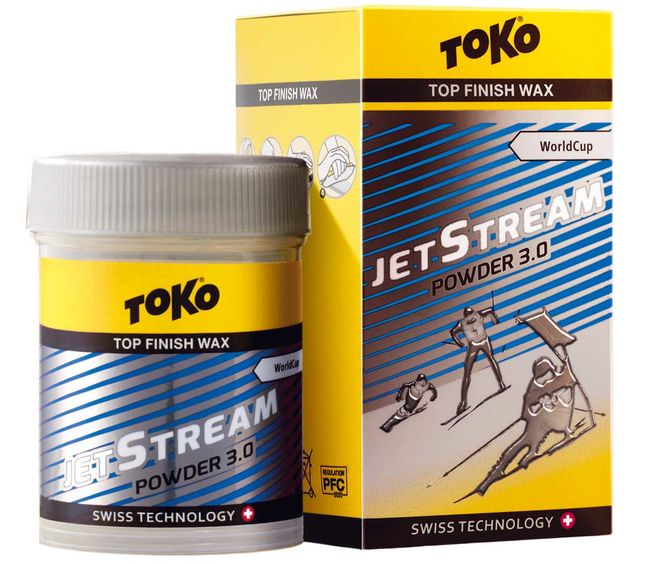 Toko JetStream Powder 3.0 Blue — Порошковий прискорювач Toko JetStream Powder 3.0 Blue використовується в якості фінішного гоночного покриття. Пропонує відмінне ковзання та покращену стійкість до стирання.