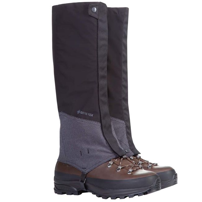 Trekmates Nevis Gore-Tex Gaiter - міцні бахіли для взуття. Використовуються у походах разом із трекінговими черевиками для захисту від дощу, вітру та бруду. Бахіли оброблені мембраною Gore-Tex, яка забезпечує водонепроникність. Кріпляться до взуття за допомогою еластичних, нейлонових лямок. Сумісні з більшістю гірськими черевиками. Зверху бахіли регулюються шнурівкою та застібаються на кнопку. Суттєво необхідна річ під час гірських походів та експедицій.