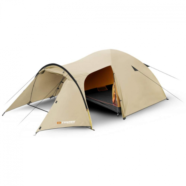 Trimm Eagle Sand Намет для 3-4 людей із великою та доступною прихожою, яку можна відкрити з двох сторін. Простір можна використовувати для вимушених ночівель або для зберігання велосипедів або багажу. Намет також придатний для сімейного відпочинку. Перевагою намету є комфорт та варіабельність у використанні.