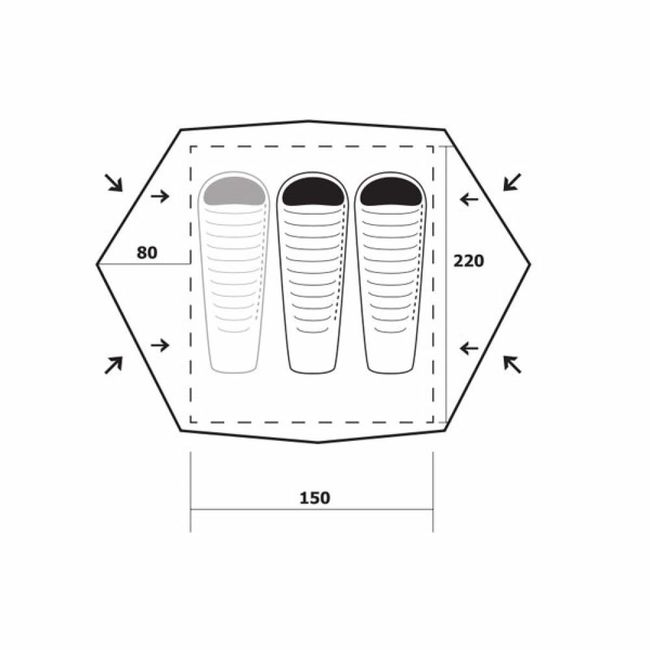 Trimm Frontier D Green Намет для 2-3 людей. Два входи з тамбуром забезпечують комфорт та зручність. Намет підходить також для високогірного туризму. Трьохдугова конструкція стійка навіть в умовах сильного вітру. Тамбури достатньо просторі для розміщення багажу чи приготування їжі.