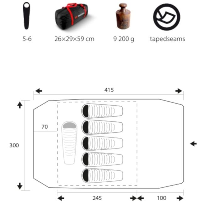 | Зовнішній тент | 100% polyester, 3000мм H2O |