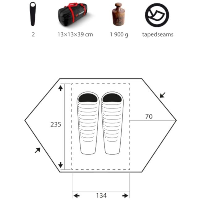 | Зовнішній тент | 100% ultra-light nylon ripstop, 4000 мм H2O, siliconized |