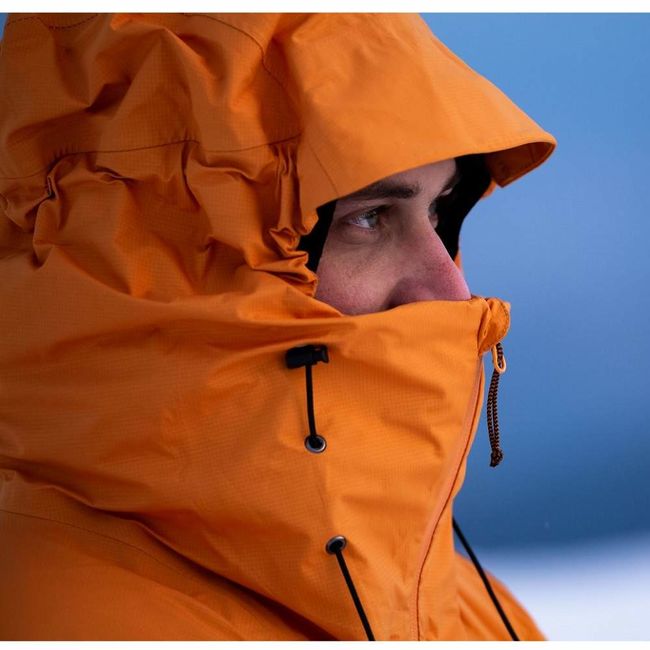 Зручний, великий капюшон, який ергономічно затягується та одягається на каску, захищаючи від несприятливих умов: вітру, дощу, снігу. Завдяки широкому крою, куртку можна одягнути поверх утеплювача, що дуже важливо під час зимових сходжень. Під руками є вентиляція на блискавках. Захищені від вологи блискавки YKK AquaGuard гарантують винятковий комфорт під час пригод будь-якої складності.