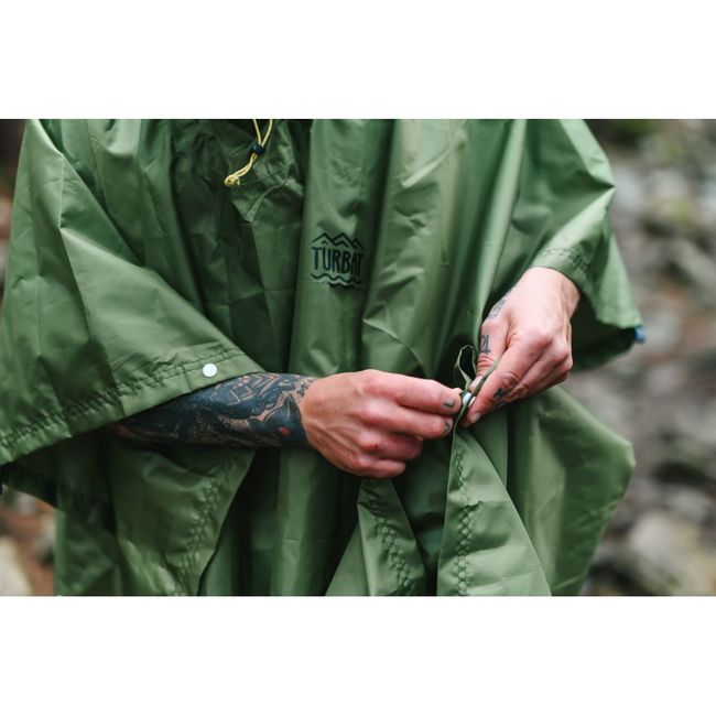 Turbat Molfar Dusty Olive - Додаткова серія пончо зробленого в Україні. Крім окремого, не яскравого кольору пончо легше від стандратного Molfar за рахунок легшого матеріалу і фурнітури. Його можна використовувати як плащ, одягаючи поверх рюкзака, а можна — як тент. Найлегше трансформувати пончо у прихисток для ночівлі чи тимчасового накриття, якщо ви маєте трекінгові палиці.