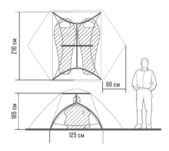 | Зовнішній тент | 68D Polyester WR 3000 мм |