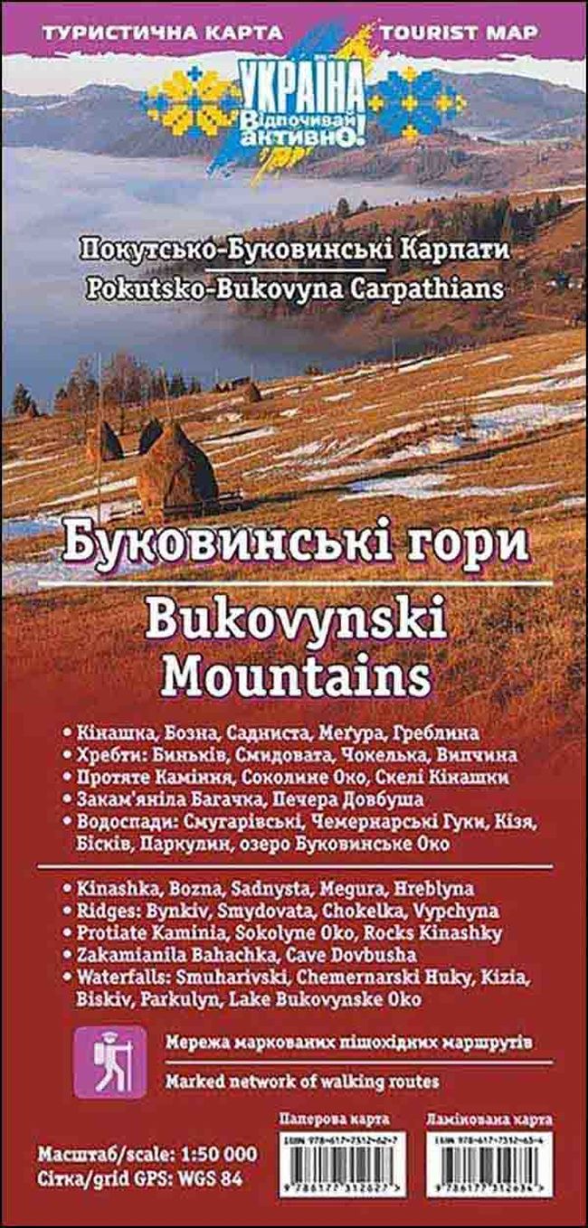 «Буковинські гори. Покутсько-Буковинські Карпати» - Найдетальніша туристична мапа даного району! Більшість з поданих територій перевірена власними виходами в гори.