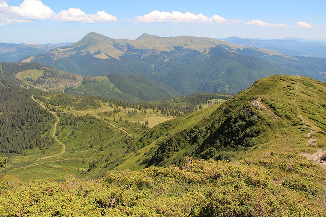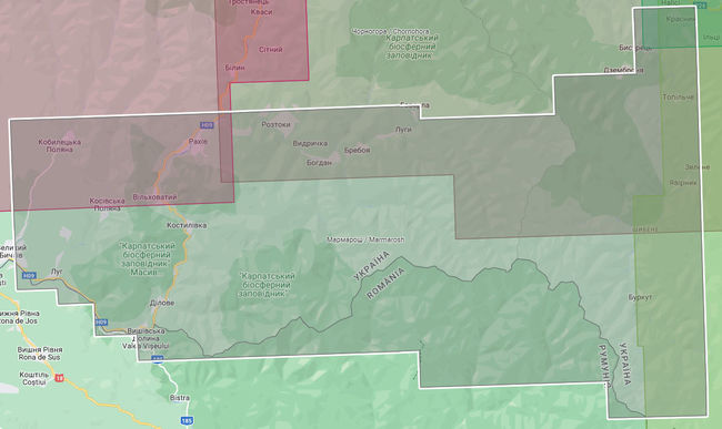 Показана більша частина Гринявських гір (окрім хребта Пнєв'є) та більша території новоствореного Верховинського національного природного парку. Показані найбільш цікаві румунські вершини, що знаходяться поблизу українського кордону. Нанесені плановані до знакування маршрути в Гринявських горах, українській частині Марамурешу та частині Чивчинських гір.