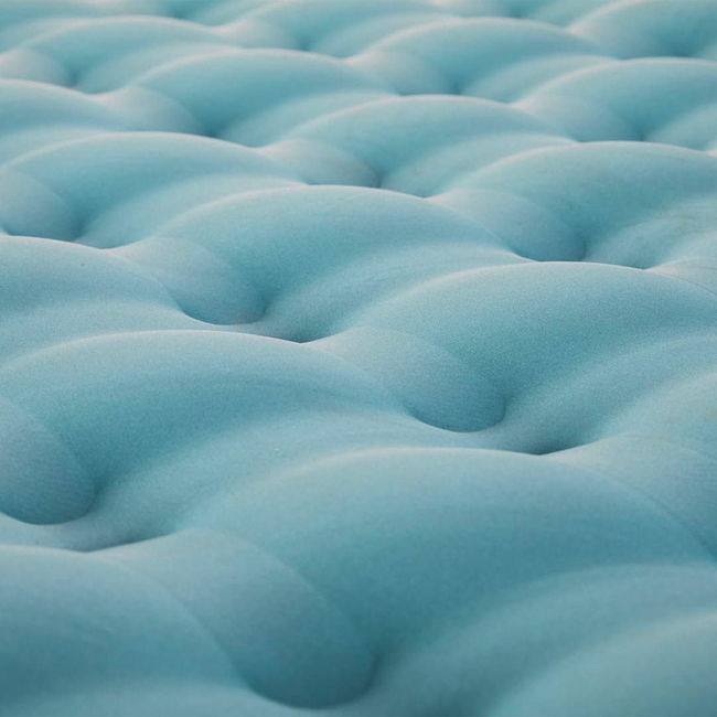- Зварна точкова конструкція формує велику кількість малих з'єднаних камер, завдяки чому вага людини рівномірно розподіляється по всій площі, не продавлюючи матрац в одному місці.