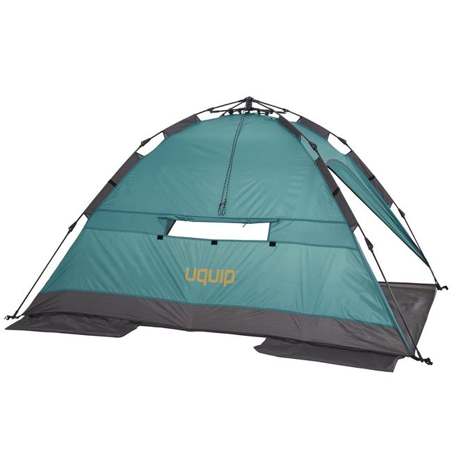 Uquip Buzzy - Завдяки інноваційному швидкозбірному механізму каркаса, пляжний намет збирається і розбирається за секунди. Навіть зовсім непідготовленому користувачеві знадобиться не більше хвилини, щоб встановити намет, і ще хвилину, щоб надійно зафіксувати його піщаними кишенями, кілочками і чотирма відтяжками. Два вентиляційних сітчастих вікна за бажанням можуть бути відкриті або закриті заслінкою. Рівень захисту від ультрафіолету UV 50+ свідчить про зменшення впливу ультрафіолету на шкіру в 50 разів, і робить цю модель вдалим придбанням для пляжного відпочинку. А також Uquip Buzzy з успіхом може використовуватися в якості намету для дитячих ігор на задньому подвір’ї, намету для пікніка або для риболовлі, в тому числі і взимку.