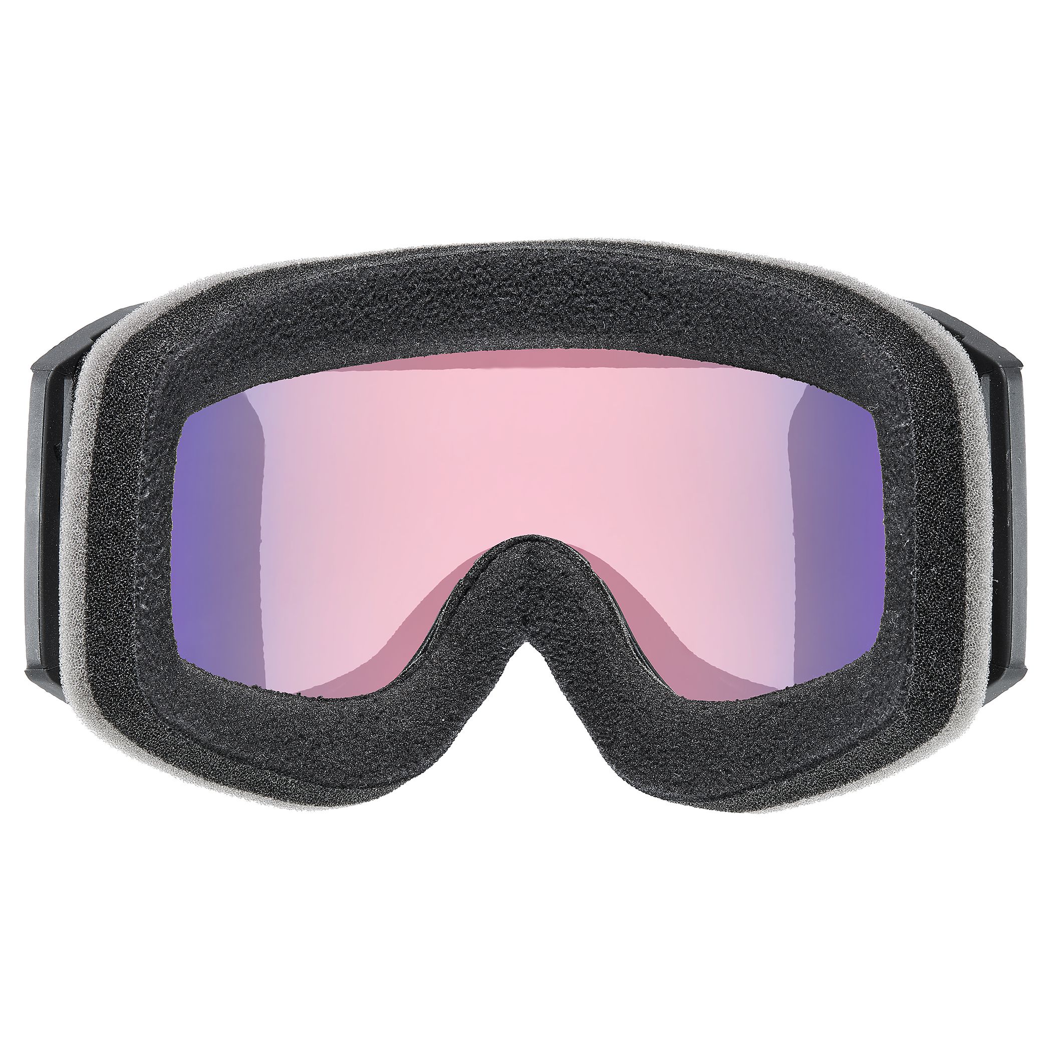Велика циліндрична дзеркальна лінза забезпечує широке поле зору, а технологія uvex colorvision® покращує контрастність і сприйняття кольорів для кращої орієнтації на трасі. Покриття supravision® гарантує зір без запотівання навіть у найінтенсивніших умовах, а 100% захист від UVA/UVB/UVC до 400 нм захищає очі від ультрафіолету.