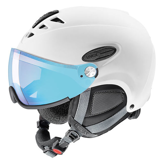 Uvex HLMT 300 Visor Vario White - це два в одному: шолом і маска. Uvex 300 Visor шолом з вбудованим міцним козирком, який опускається і служить як маска, захищаючи очі. Маска захищена від запотівання, забезпечує 100% захист від ультрафіолетового випромінювання.